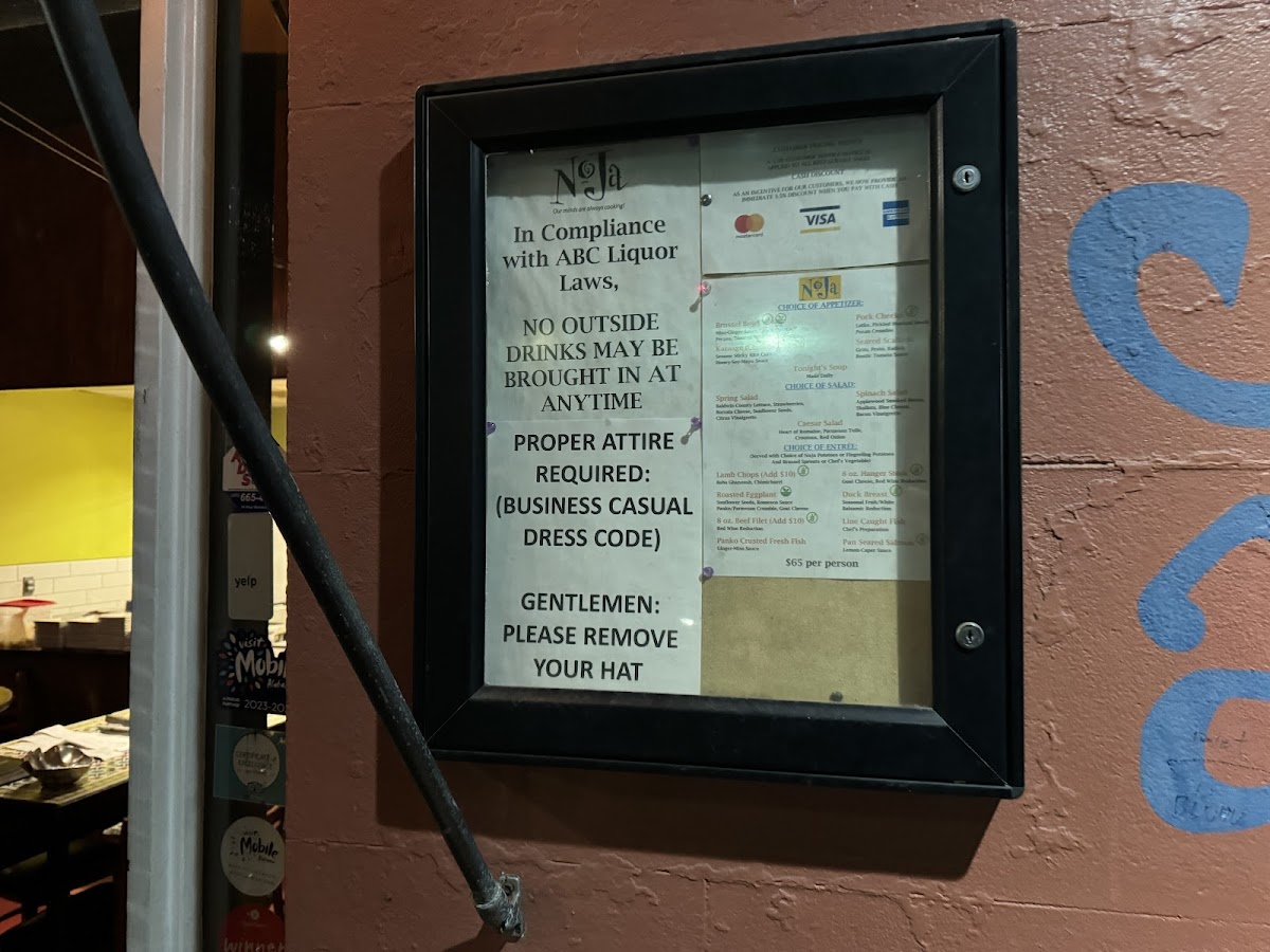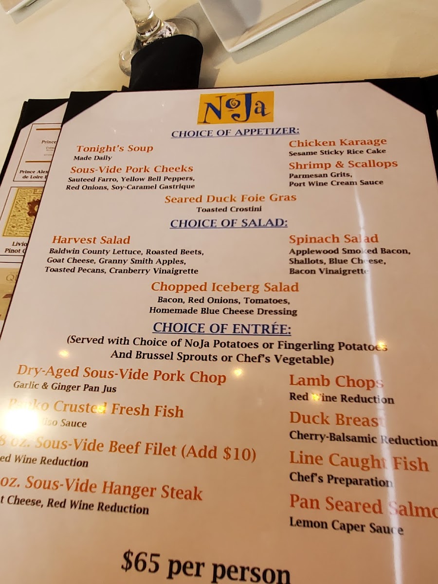 Noja - Mobile is a culinary gem nestled in the heart of Mobile, AL. The restaurant's menu showcases a delightful blend of flavors, with standout appetizers like the Seared Scallops and Pork Cheeks drawing rave reviews from guests. The thoughtfully curated selection of wines by the glass complements each dish perfectly, featuring everything from crisp Pinot Grigio to rich Pinot Noir.